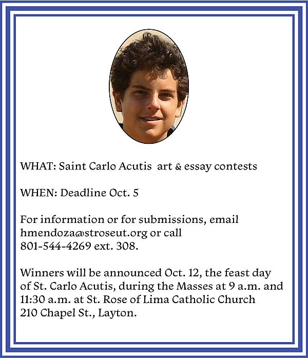 LAYTON — The Saint Carlo Acutis Apostolate in the Diocese of Salt Lake City is inviting all school-age children to participate in an arts contest to honor the newly canonized saint.