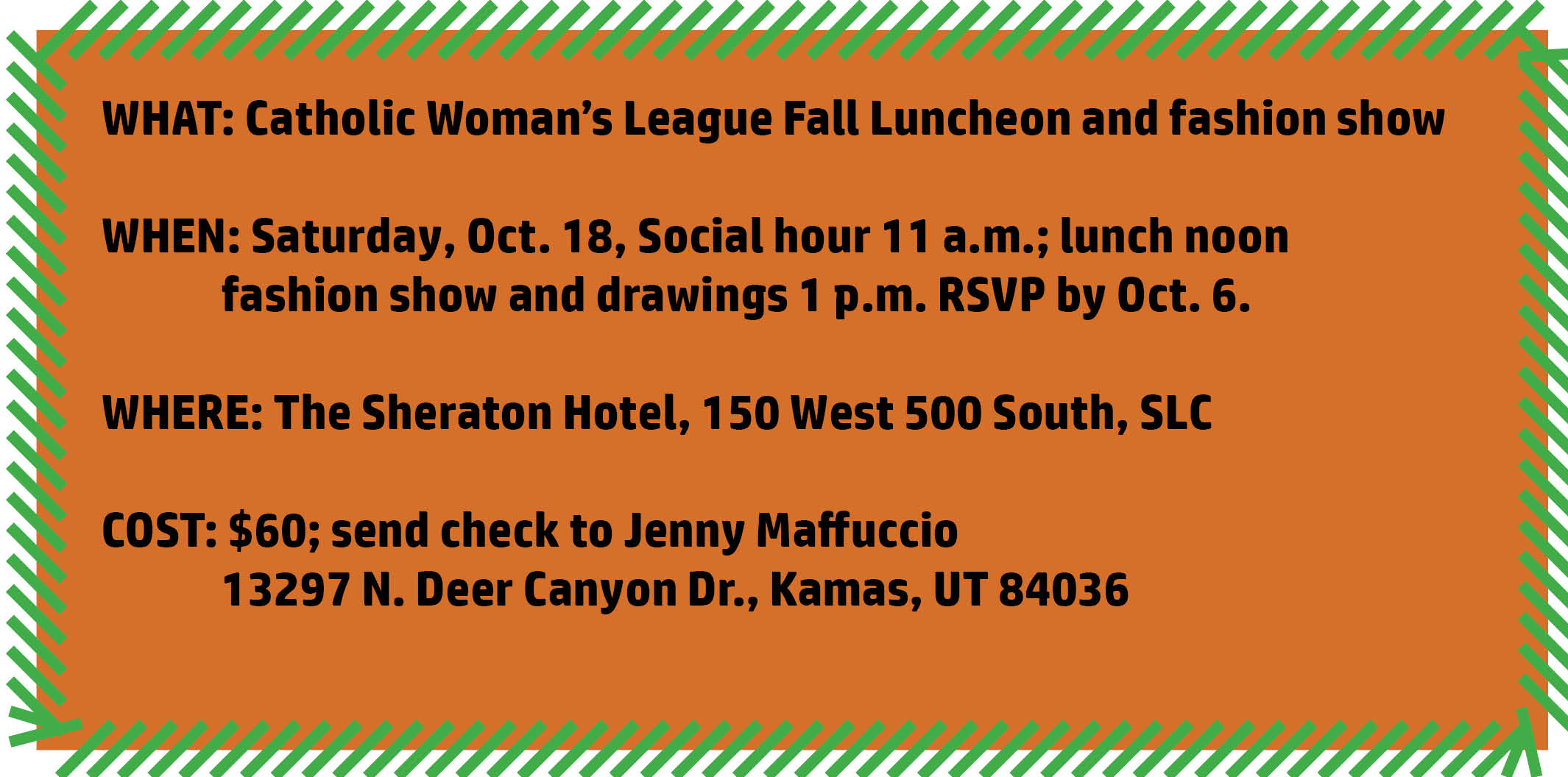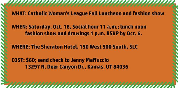 SALT LAKE CITY — This year, the Catholic Woman’s League will hold its annual fall luncheon and fashion show on Oct. 18 at the Salt Lake City Sheraton. Proceeds from the event’s opportunity drawings will benefit the women’s group at St. Andrew Parish and Children’s Center Utah.
