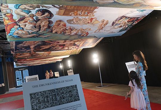 John and Chris Springman, who also attended the exhibition preview, had a similar reaction. They enjoyed visiting the Sistine Chapel in 2016, but it was crowded, and the time allowed was short. Because the ceiling was more than 60 feet from the ground and brimming with images, it was nearly impossible to see all of its detail and beauty, they said.