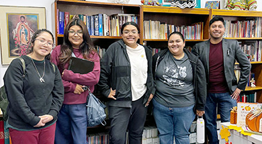 Izquierda a derecha: Dulce Olivo-Rivera, Nayara Moreno, Melissa Moreno de la parroquia Católica de Nuestra Señora de Lourdes, en Magna, Celeste Romero de la parroquia Católica de San José, en Ogden y Ángel García, director d ela Oficina Diocesana del Ministerio Hispano.