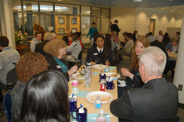 Kuhr was one of six students from various religious backgrounds who charmed a diverse group of faith leaders at a Feb. 11 ecumenical luncheon at JDCHS, which hosted the Interfaith Roundtable in celebration of February being Interfaith Month. Those who attended were from The Church of Jesus Christ of Latter-day Saints, Calvary Baptist Church, Hilltop Methodist, Unification Church, Catholic Diocese of Salt Lake City, Greek Orthodox Church, VA Medical Center Chapel and Catholic Community Services.