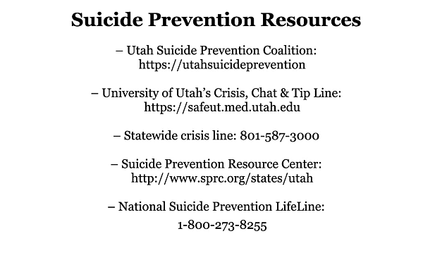 – Utah Suicide Prevention Coalition: https://utahsuicideprevention