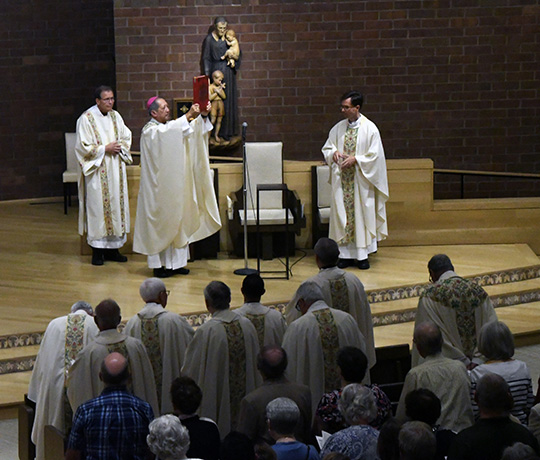 Durante la cena realizada después de la Misa el Obispo Solis, a nombre de los sa-cerdotes y del Pueblo de Dios en la Diócesis de Salt Lake City ofresco “nuestras sinceras felicitaciones... Que Dios siga bendiciéndolos y dándoles la fortaleza para seguir siendo una Iglesia vibrante que hace presente la presencia de Cristo no solo aquí en Utah sino en el mundo.”