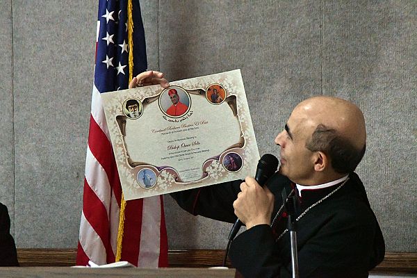 Through a translator, the cardinal gave an overview of his perspective of the situation in the Middle East, where Muslims and Christians have lived together for centuries but now are threatened by terrorist groups who fight in the name of Islam, he said. Despite this threat, “As Christians we are committed to remain in the Middle East, to carry the gospel of life, the gospel of love, the gospel of peace,” he said, and asked those present to pray for the Maronites and for peace in the Middle East. He also asked them to “tell the people in charge” that there have been enough wars, enough destruction, and to say that they want peace in the Middle East.
