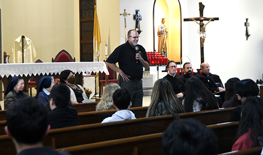 “Sea lo que sea a lo que Dios te llama, sea lo que sea a lo que te llama a hacer, eso es lo bueno, ya que El sabe lo que es bueno para ti,” les dijo el padre Delka a los asistentes a la noche vocacional, animándolos a responder su llamado individual.