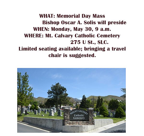 Mt. Calvary is located adjacent to the city cemetery; 1100 East is the boundary between the two. It is the only Roman Catholic cemetery in the state, and only Catholics may be buried there. The diocese celebrates Masses for Memorial Day and All Souls Day, along with Respect for Life events, on the site.