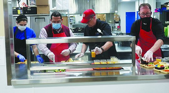 El 13 de diciembre, el seminarista diocesano José Luis Gomez y el padre Joseph Delka, director dioceano de vocaciones arreglan las charolas de comida para los clientes del comedor de St. Vincent en Salt Lake City. Los seminaristas diocesanos Brian Schumacher, el diácono Tristan Dillon y Alberto Carrillo también participaron. El Obispo Oscar A. Solis acompañó a los seminaristas.