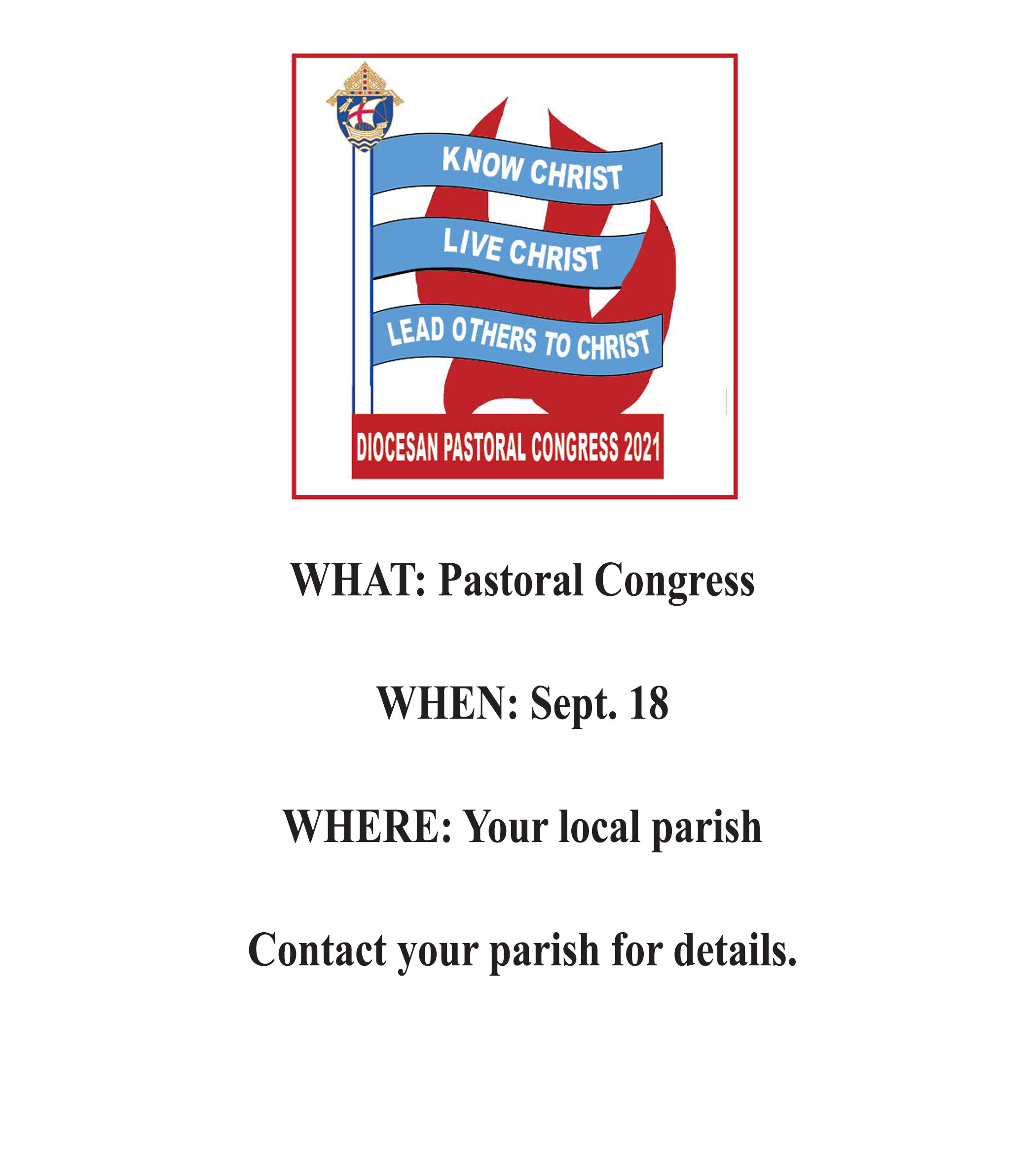 This year’s Diocesan Pastoral Congress will have a different format than in past years. Rather than meeting at one central location, local Catholics will instead meet at their parish. They will hear a pre-recorded message from Bishop Oscar A. Solis, then view a video presentation by the keynote speaker, who will also suggest discussion questions for parishioners.